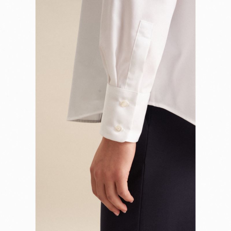 Ausgestellter Schnitt in A-Linie, Kentkragen, 2-Knopf Manschette, Abnäher am Rückenteil, bügelfrei, 40° waschbar