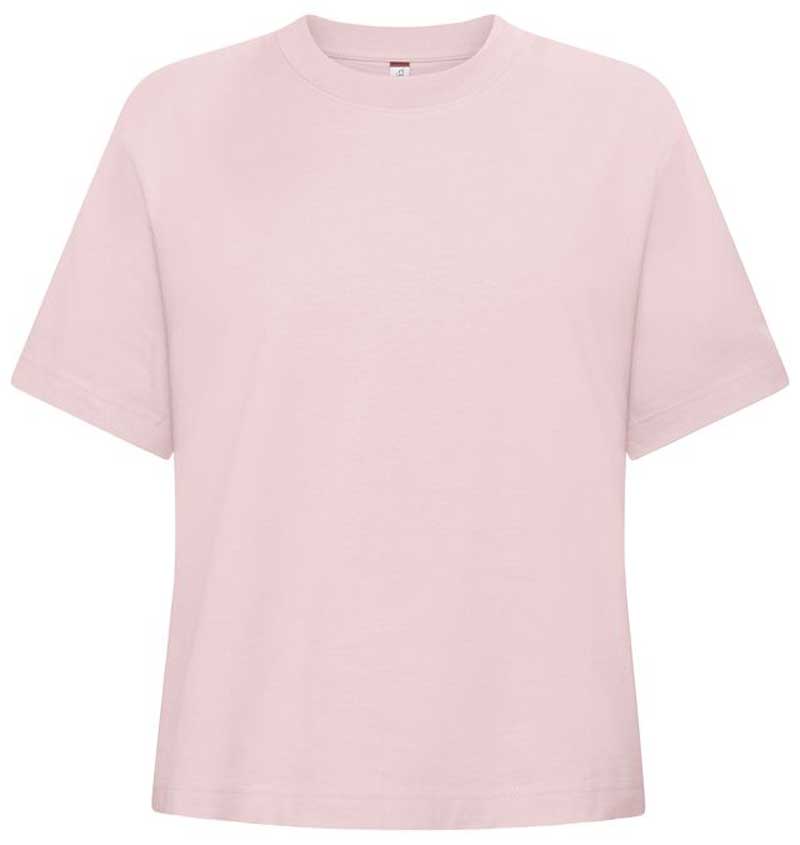 Ein oversize Damen T-Shirt aus 100 % ringgesponnener Baumwolle. Ein leicht breiterer Doppelkragen aus Baumwolle und Elasthan, verstärktes Nackenband und ein leicht abnehmbares Etikett für Rebranding. Das T-Shirt wurde vorgeschrumpft und enzym behandelt.