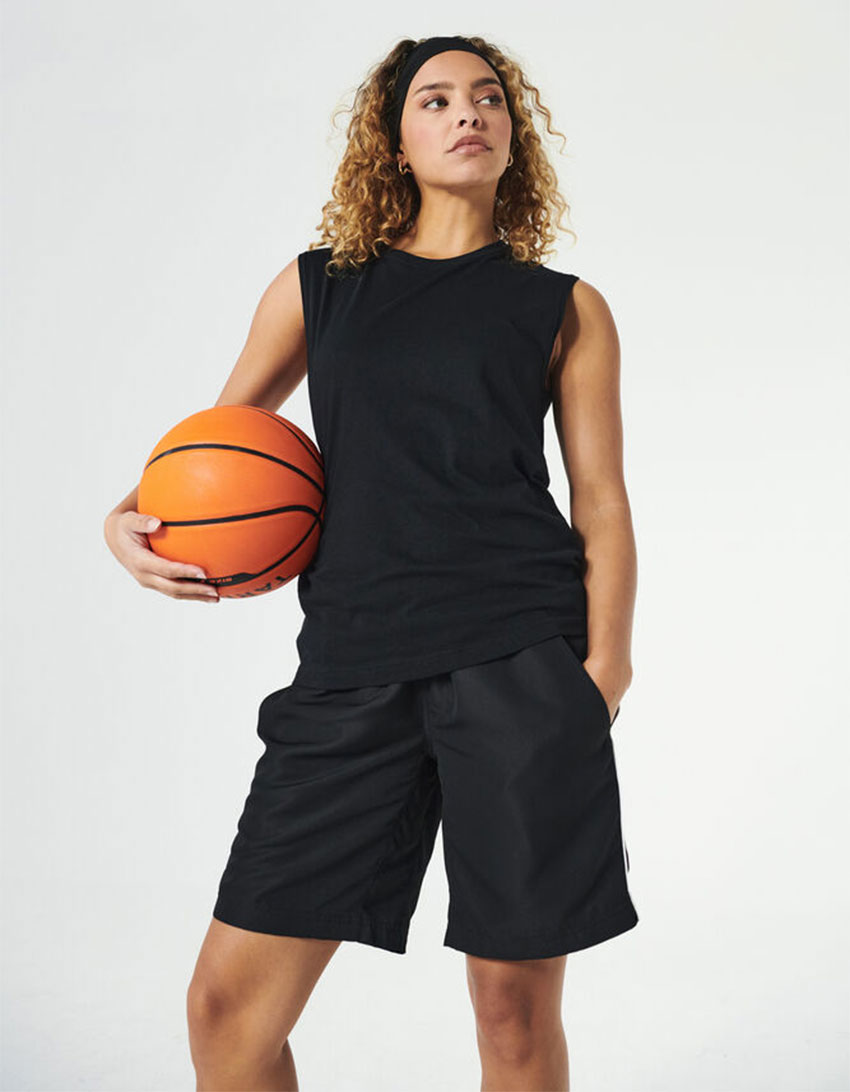 Ein ärmelloses Unisex-T-Shirt mit klarer Linienführung.