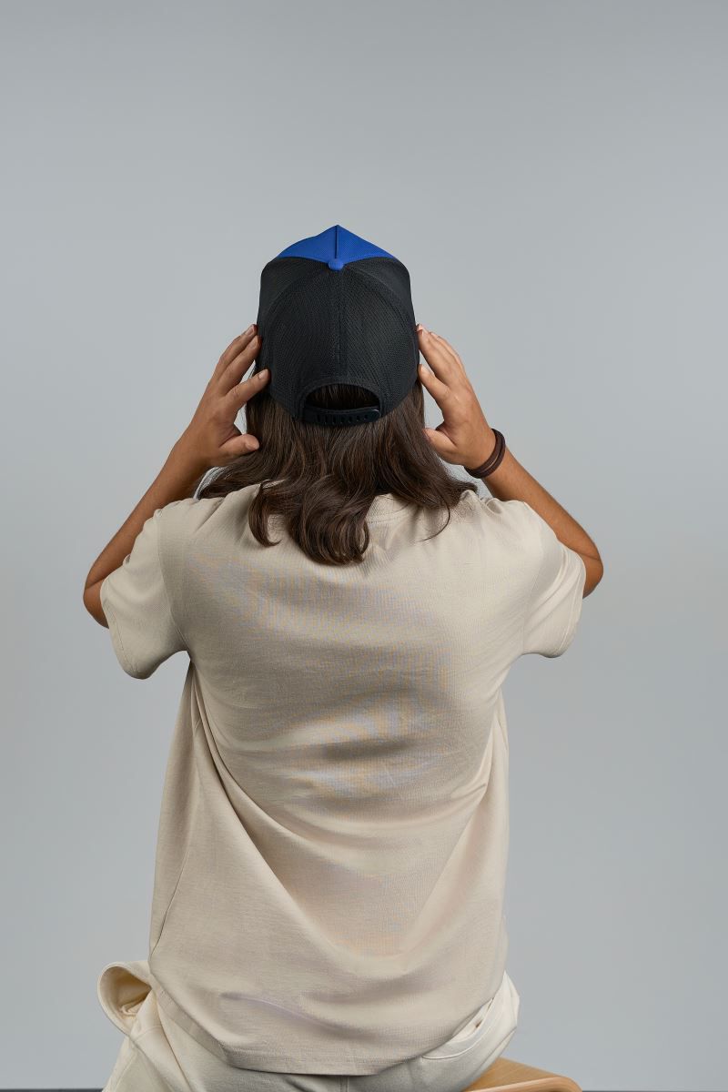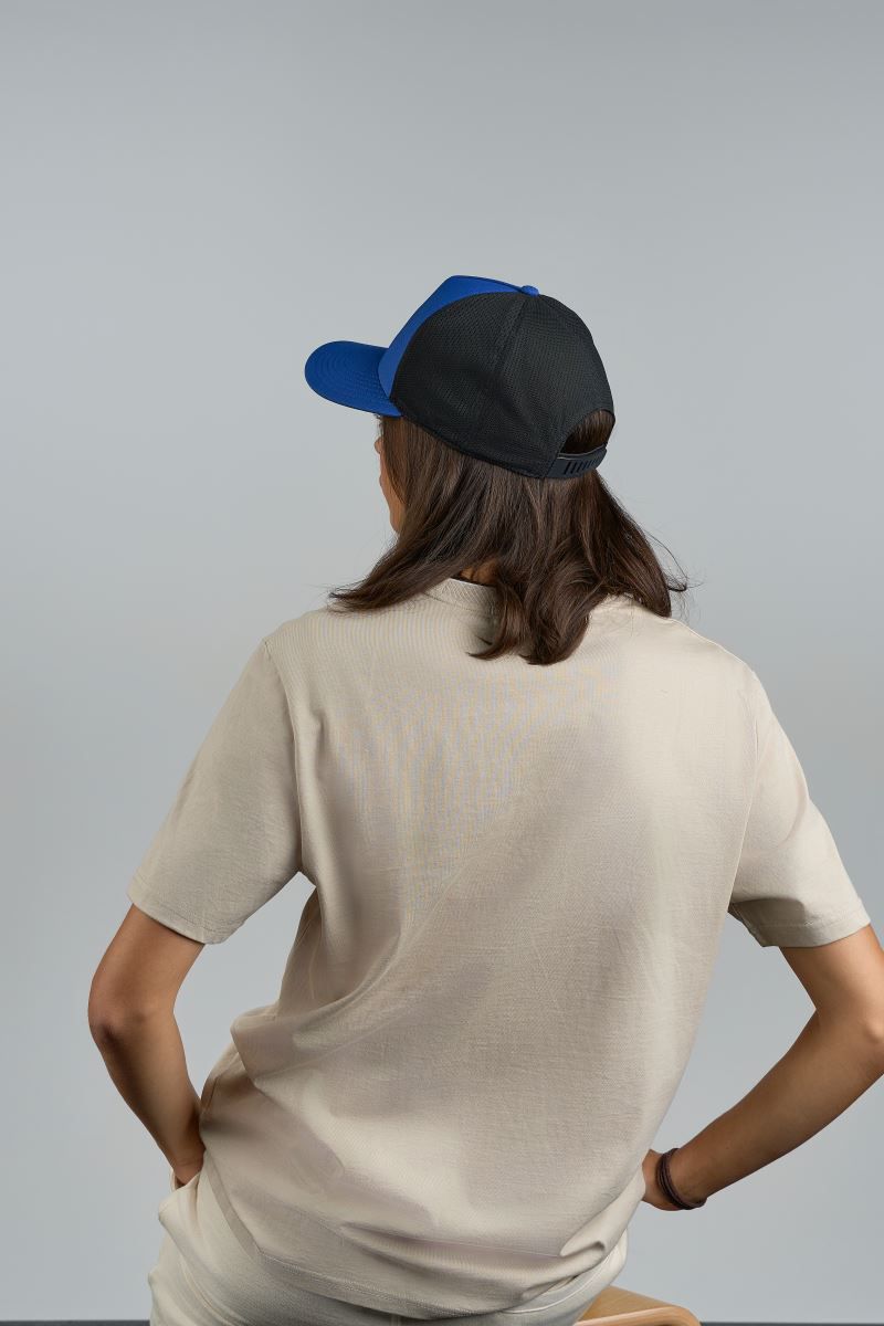 Klettverschluss, 6 Ziernähte am Schild, Schweissband aus recyceltem Polyester,