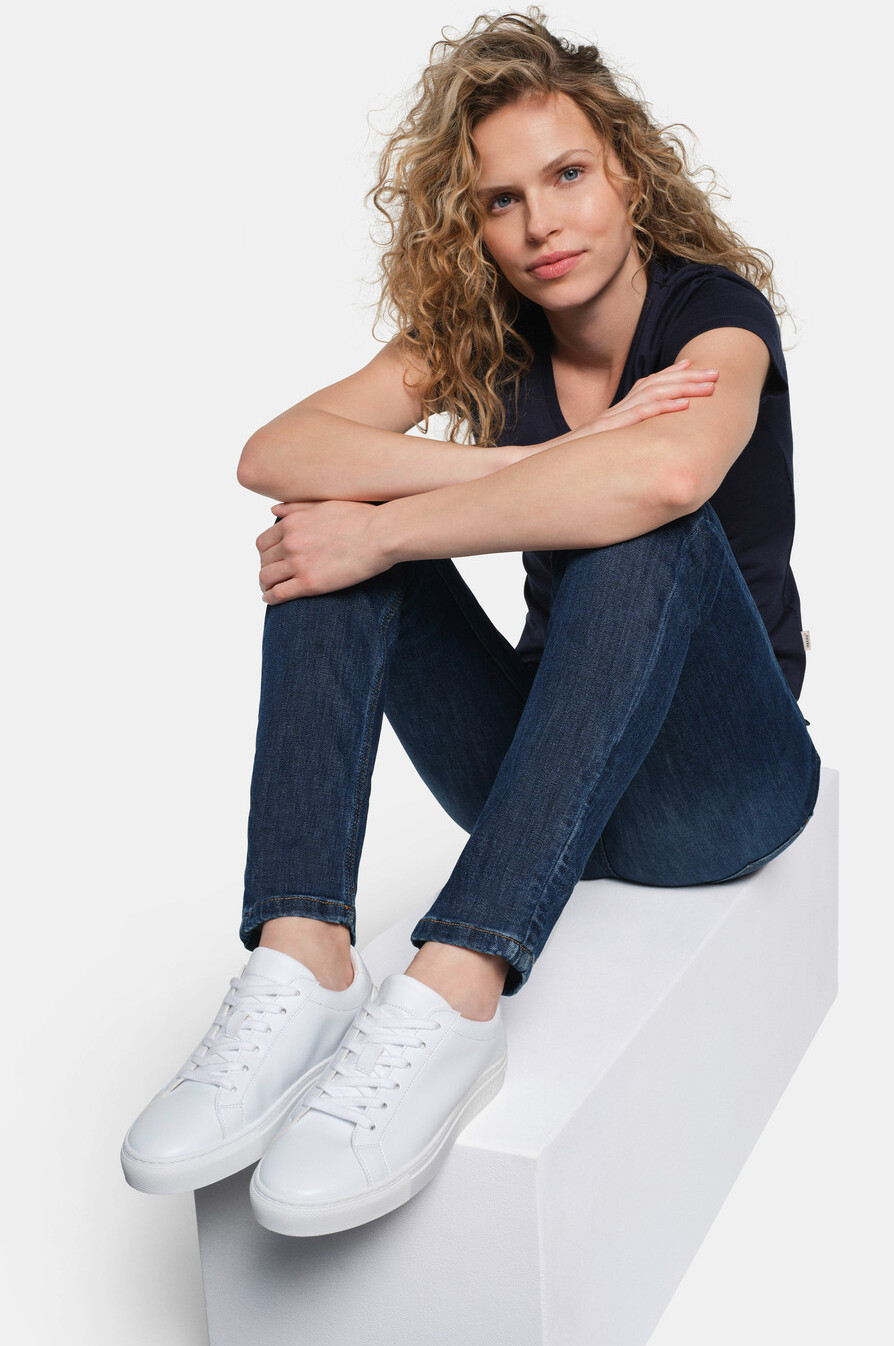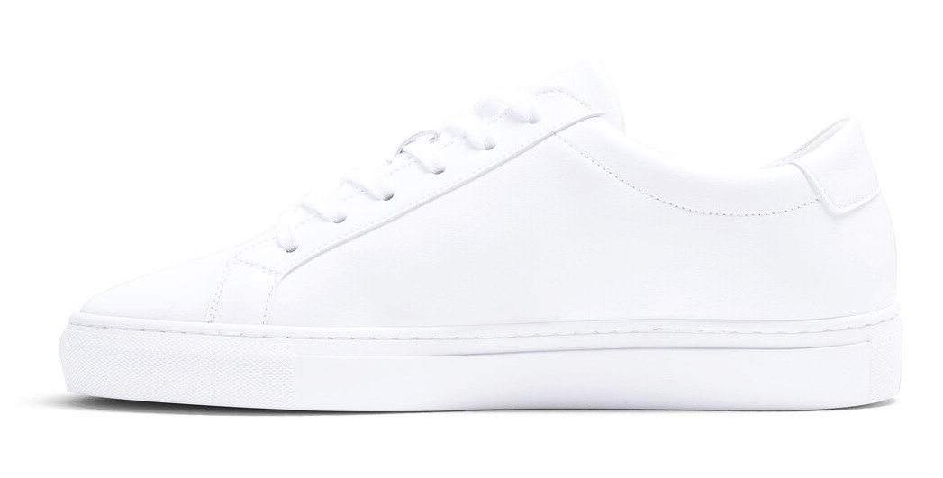 Zunge und Schaftrand gepolstert. Herausnehmbare leicht gepolsterte PU-Schaumstoff-Innensohle aus recycelten Kunststoffen. Obermaterial Apfelleder aus Produktionsabfällen der Apfelindustrie und geriffelte Laufsohle aus Gummi mit Recyclinganteil. Verfügbar auch als Unisexmodell.