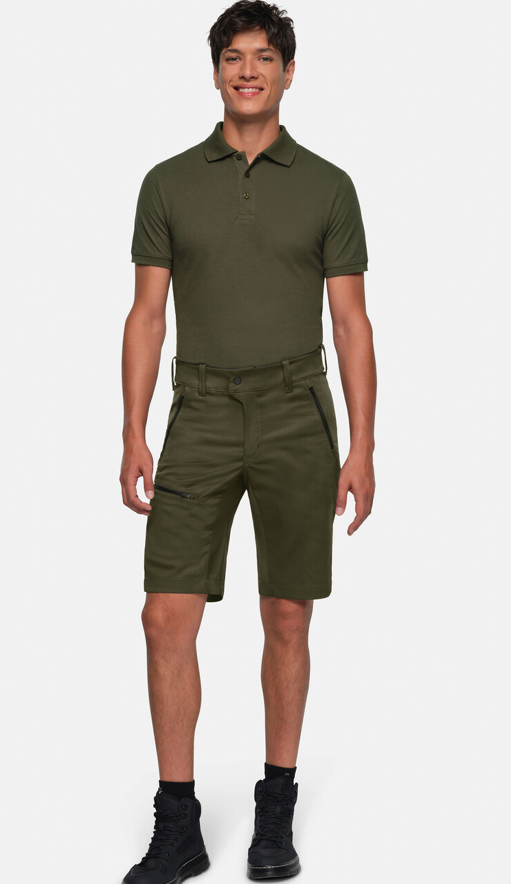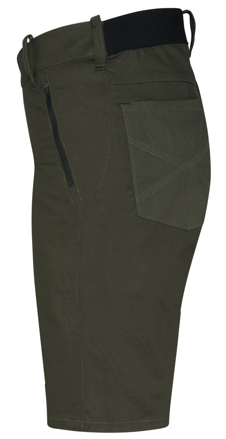 Sehr strapazierfähige, funktionelle Shorts mit dehnbarem Hosenbund durch robusten Strickeinsatz hinten.