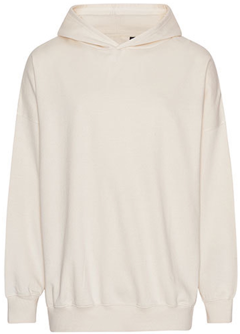 Oversize Schnitt, gefütterte Kapuze, Nackenband, überschnittene Schultern, Rippstrickbündchen an Ärmel und Saum, innen angeraut, neutrales Grössenlabel, 60° waschbar, 40° Wäsche empfohlen, trocknergeeignet bei niedriger Temperatur