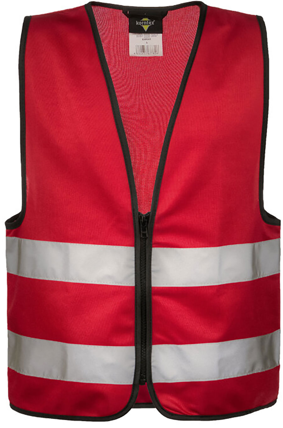 Korntex® Kinder-Warnweste, Zertifiziert nach EN 1150, zwei 5 cm breite Reflektions-Streifen um den Körper, verschließbar mit Reißverschluss, mit EAN Barcode ausgestattet