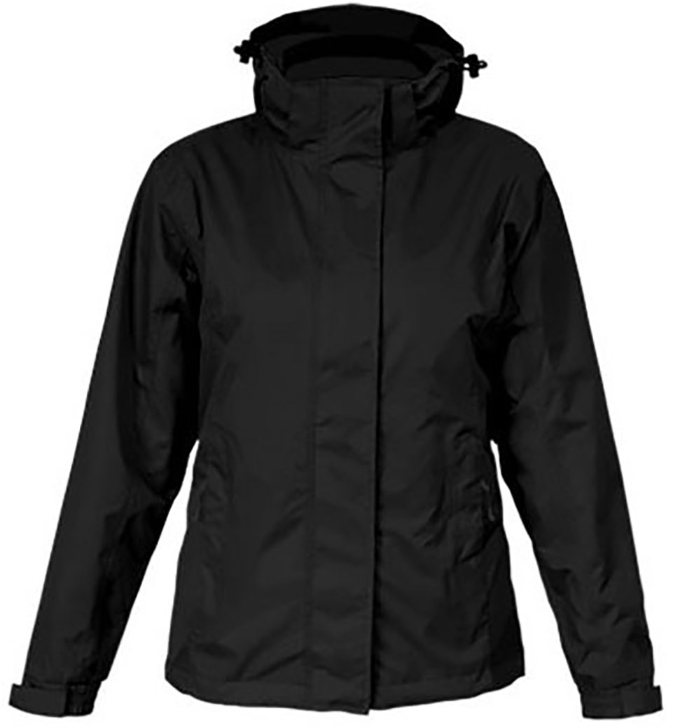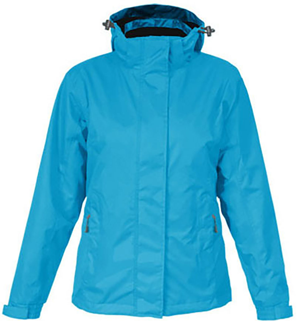 Jacke, Stehkragen, verdeckter 2-Wege-Reißverschluss plus Klettverschlüsse, abnehmbare Kapuze mit Volumenregulierung vorn und hinten, verdeckte Napoleontasche mit Reißverschluss, verstellbare Armabschlüsse mit Klettverschluss, Tunnelzug am Saum mit Kordelstopper innen, 2 Seitentaschen mit Reißverschluss, invisible Zip zum Veredeln, Reißverschluss und Fixierung für wechselbare Innenjacke, neutrales Grössenetikett, bedruckbare Fläche innen für Branding, getapte Nähte, PU Beschichtet, Femininer Schnitt